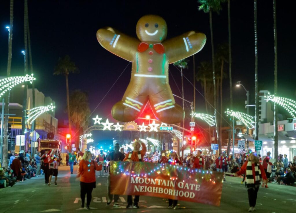 Why bundle up when you can watch holiday floats under palm trees? Palm Springsโ€”also one of the gayest cities in Americaโ€”transforms Palm Canyon Drive into a glowing spectacle for its 33rd annual Festival of Lights Parade. Over 100,000 people descend on the desert for this free event featuring 80+ floats, giant Macy’s-style balloons, and marching bands. The night before (Dec 5), catch the tree lighting at Frances Stevens Park with Santa, free cookies, and cocoa.